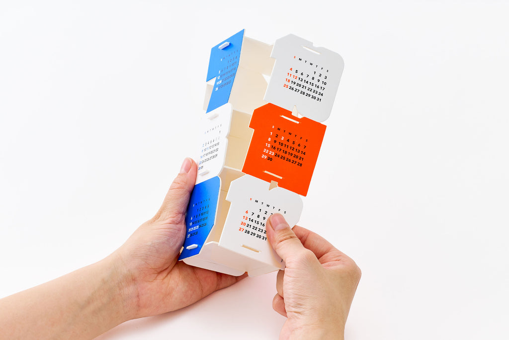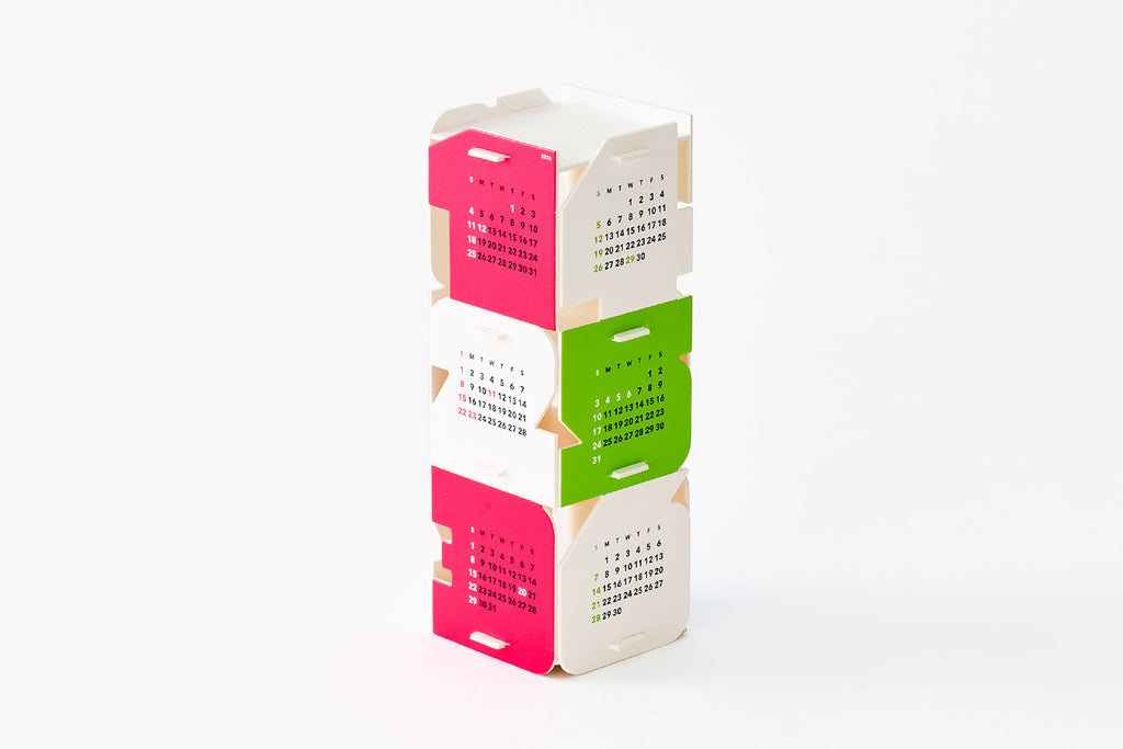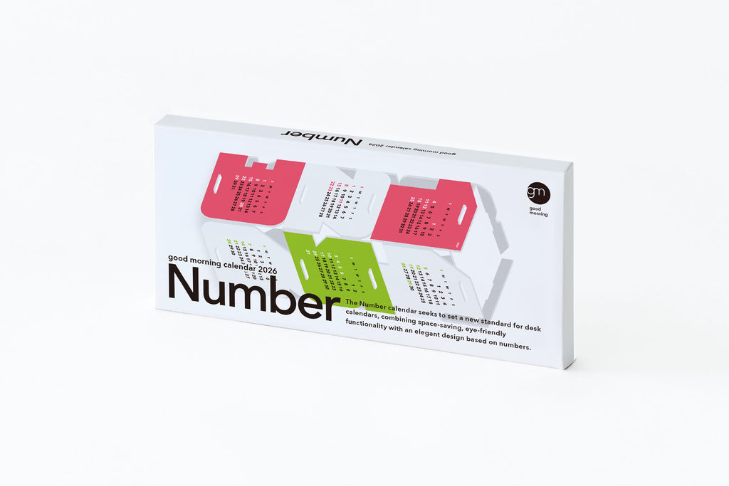 good morningNumberは、数字をモチーフにしたカレンダーです。オリジナルデザインの数字で型抜きされた4枚のパネルを中板にセットすると、省スペースで使いやすい3カ月カレンダーになります。